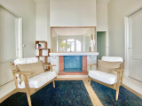 Cuisine ouverte haut de gamme, prolongée par un salon/salle à manger lumineux avec cheminée, s’ouvrant sur une large terrasse ombragée face à la mer